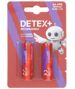خرید عمده باطری شارژی قلمی +NI-MH 1/2V DETEX مدل AA HR6 2000mah - بسته دوعددیتماس بگیرید