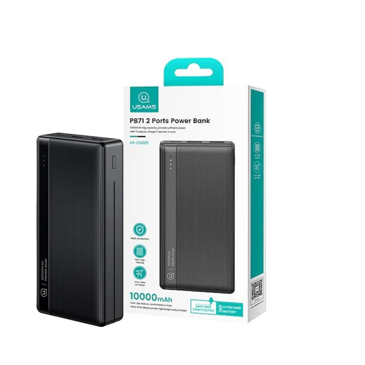پاور بانک 10000 میلیآمپر USAMS مدل US-CD205 با پورت Type-C دوطرفه، قابلیت فست شارژ و طراحی باریک، یک گزینه عالی برای استفاده روزانه و مسافرت است.