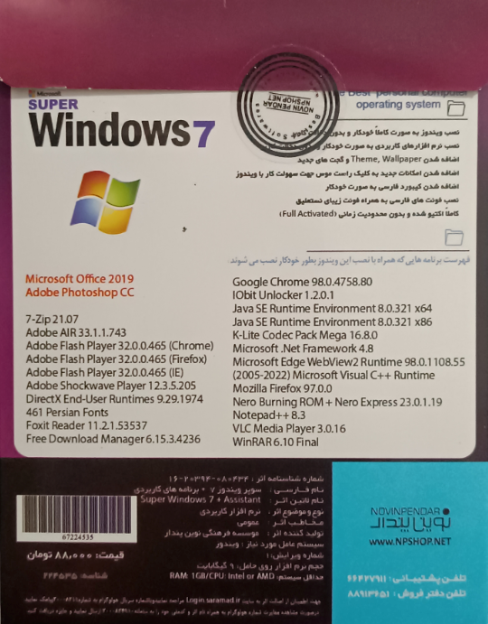 سوپر ویندوز 7 + ASSISTANT یک نسخه تقویتشده و بهینه از سیستمعامل محبوب ویندوز 7 است که برای کاربران خانگی، اداری و حرفهای طراحی شده است. این نسخه دارای عملکردی سریع، پایداری بالا و سازگاری گسترده با نرمافزارها و سختافزارها است.