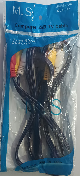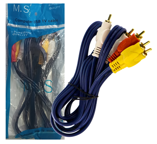 کابل AV سه به سه با طول ۱.۵ متر از برند M.S یک کابل کاربردی و پراستفاده برای اتصال دستگاههای صوتی و تصویری نسل قدیم مانند دیویدی پلیر، گیرنده دیجیتال، تلویزیونهای CRT، دستگاههای VCD، کنسولهای بازی قدیمی و ضبطهای خانگی است. این کابل شامل سه فیش رنگی زرد، قرمز و سفید است که به ترتیب برای انتقال تصویر، صدای راست و صدای چپ بهکار میروند.