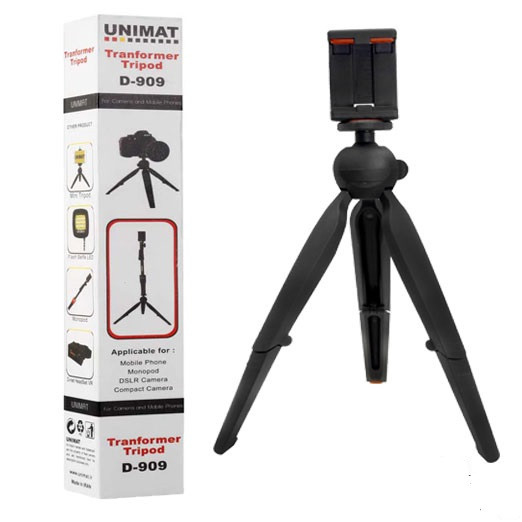 سهپایه نگهدارنده موبایل UNIMAT مدل D-909 – سبک، مقاوم و مناسب برای عکاسی و تولید محتوا