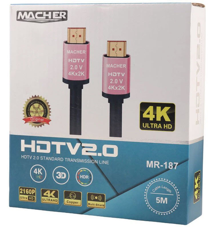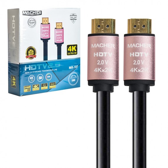 کابل HDMI 4K MACHER مدل MR-187 (۵ متر) – انتقال تصویر و صدا با کیفیت بالا برای فواصل طولانی