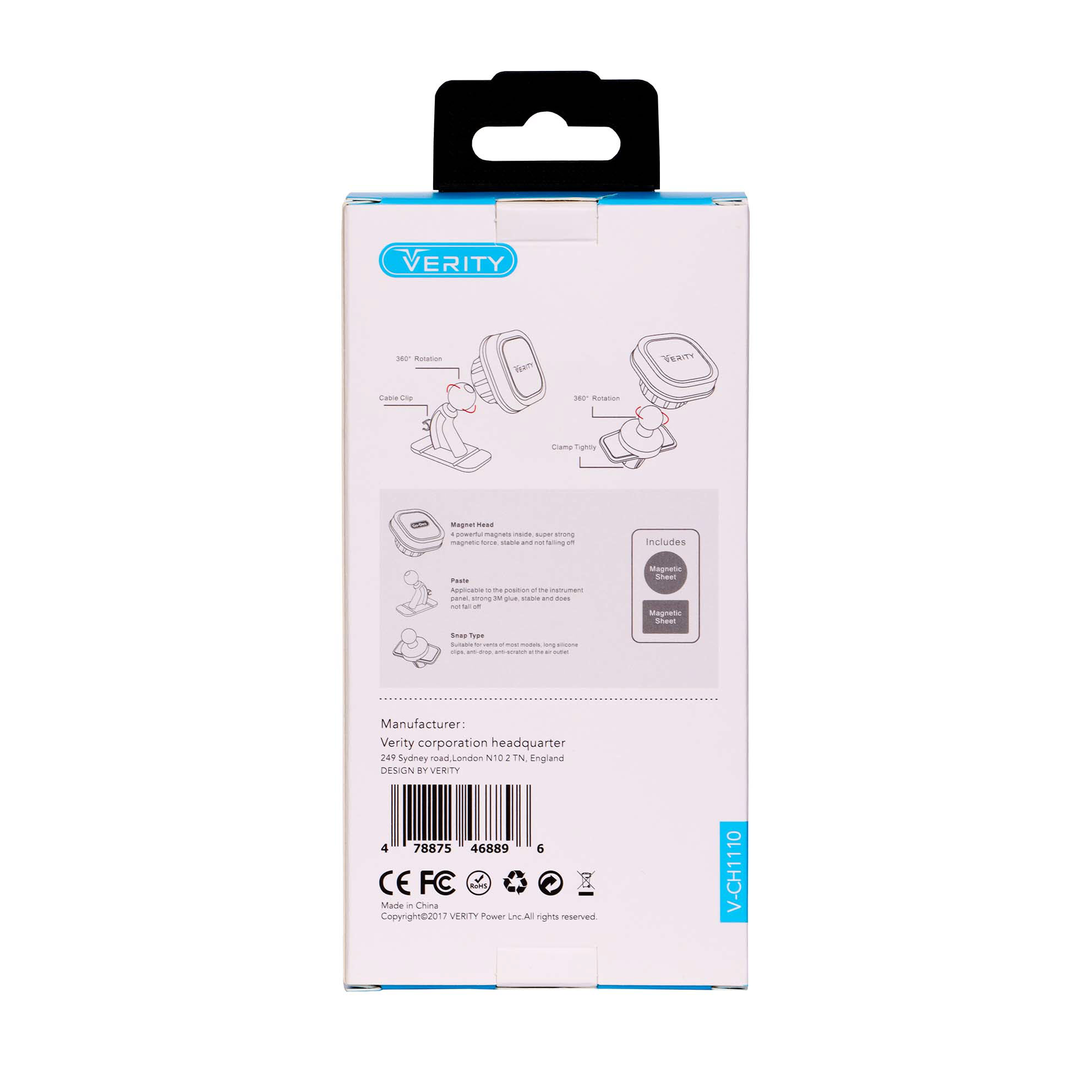 هولدر مگنتی خودرو VERITY مدل V-CH1110 – مگنت فوققوی، چرخش ۳۶۰ درجه و دوکاره