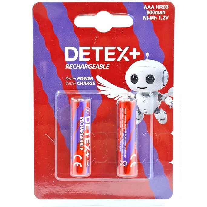 خرید عمده باطری شارژی نیمه قلمی +NI-MH 1/2V DETEX مدل AAA HR03 800mah - بسته دوعددی
