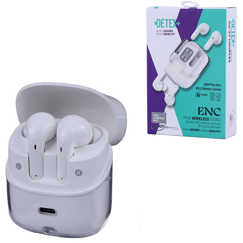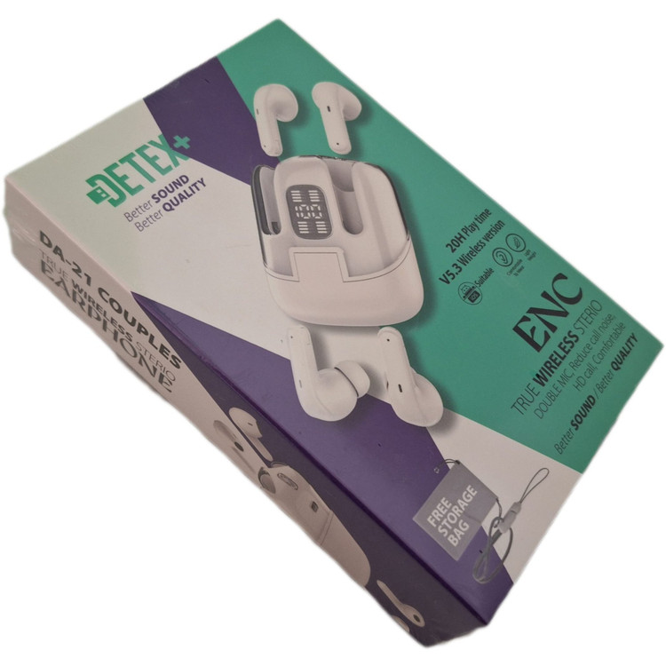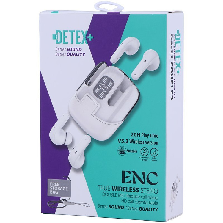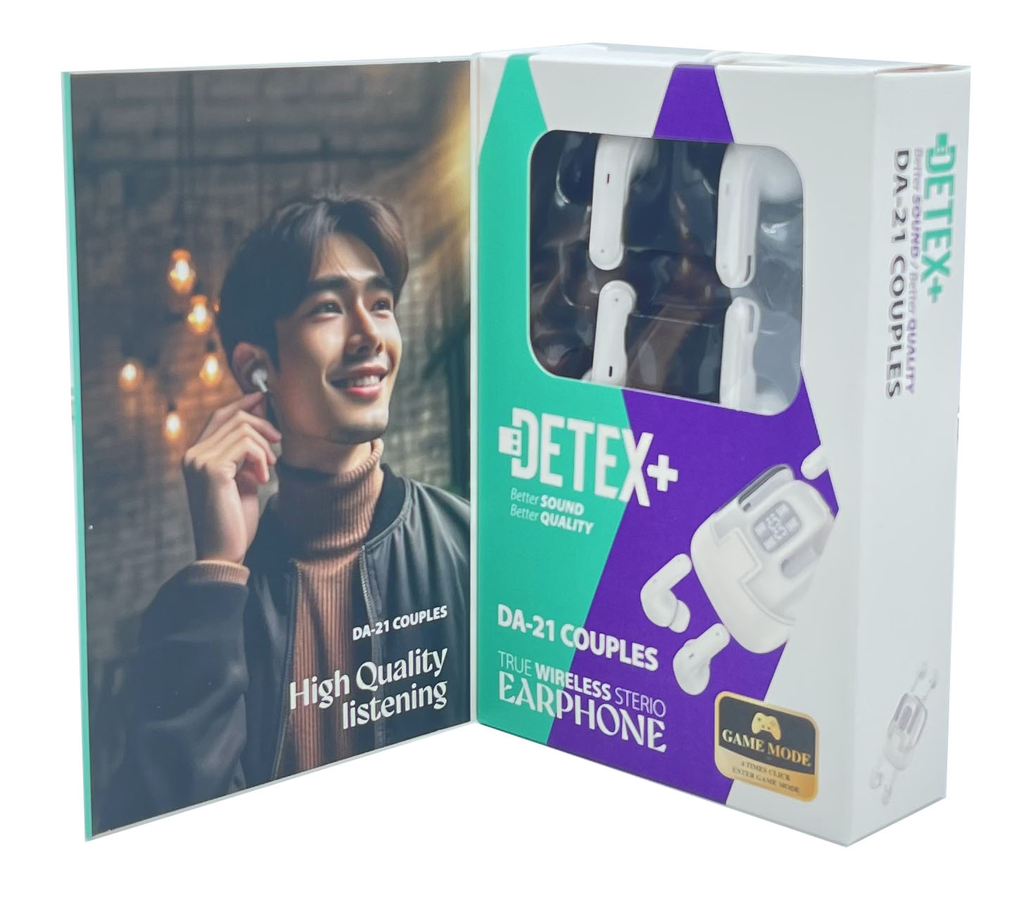 ایرپاد DETEX DA-21 یک هدفون بیسیم با طراحی مدرن و سبک است که برای مکالمه، گوش دادن به موسیقی و استفاده روزمره گزینهای مناسب محسوب میشود.